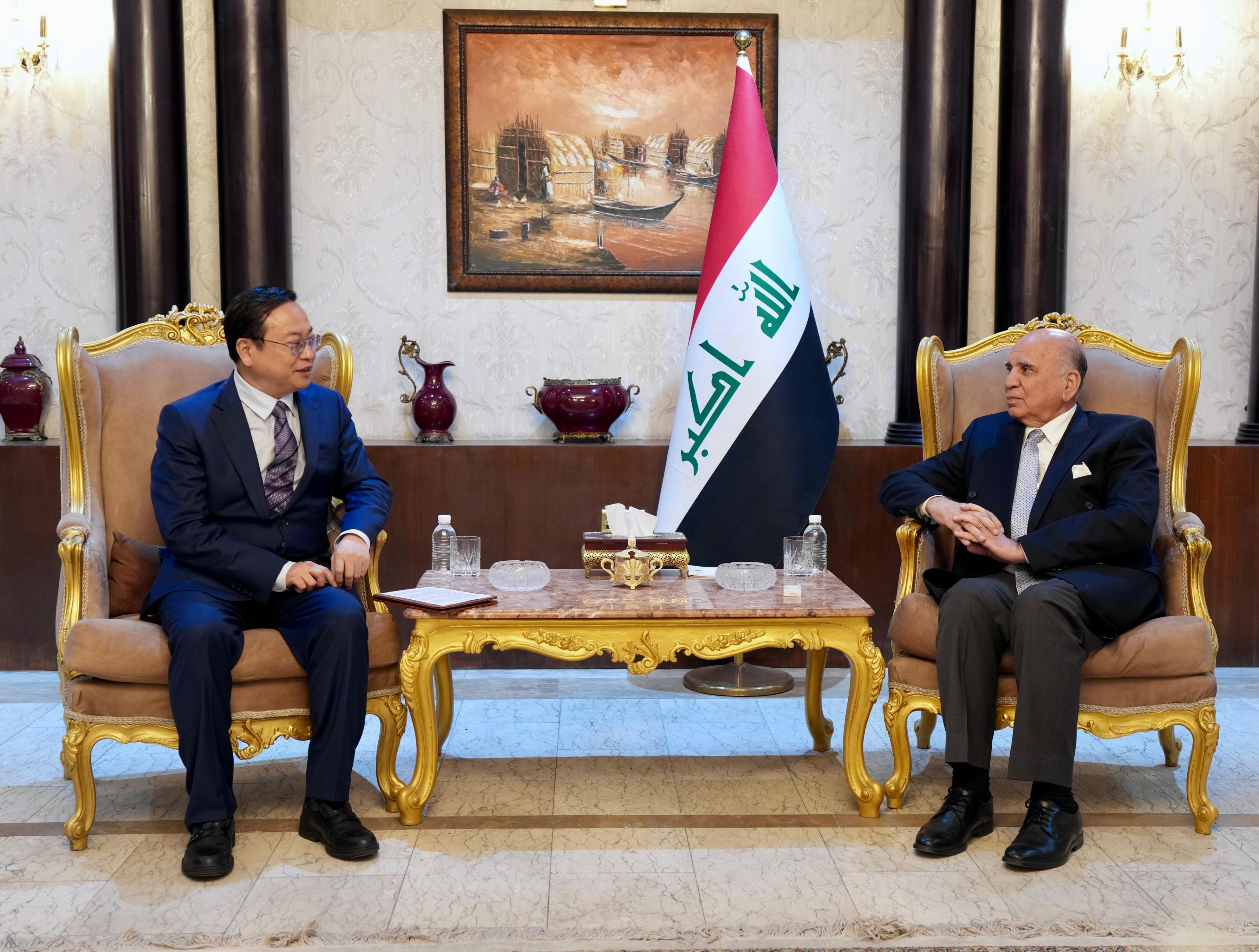 وأكد وزير الخارجية، بحسب البيان، أهمية العلاقات الاستراتيجية التي تجمع العراق بالصين، بوصفها دولة محورية وشريكاً مهماً لبغداد، لافتاً إلى أن حجم التبادل التجاري بين البلدين يبلغ نحو 54 مليار دولار، وأن الصين تمثل أكبر سوق للنفط العراقي.