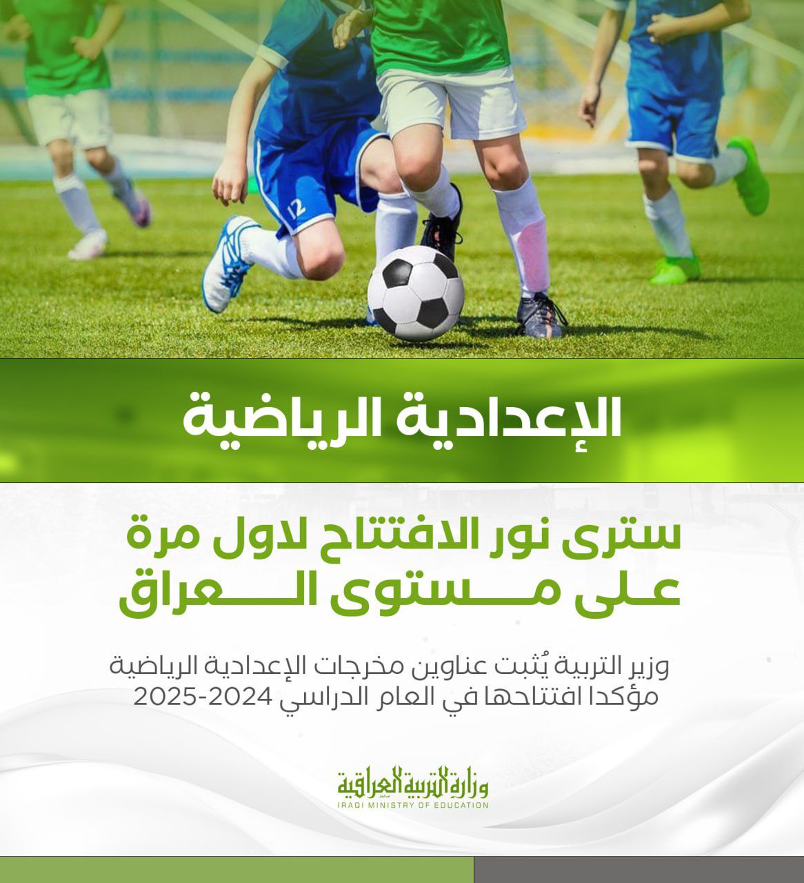 أكد وزير التربية إبراهيم نامس الجبوري، السبت، افتتاح الإعدادية الرياضية في العام الدراسي المقبل.