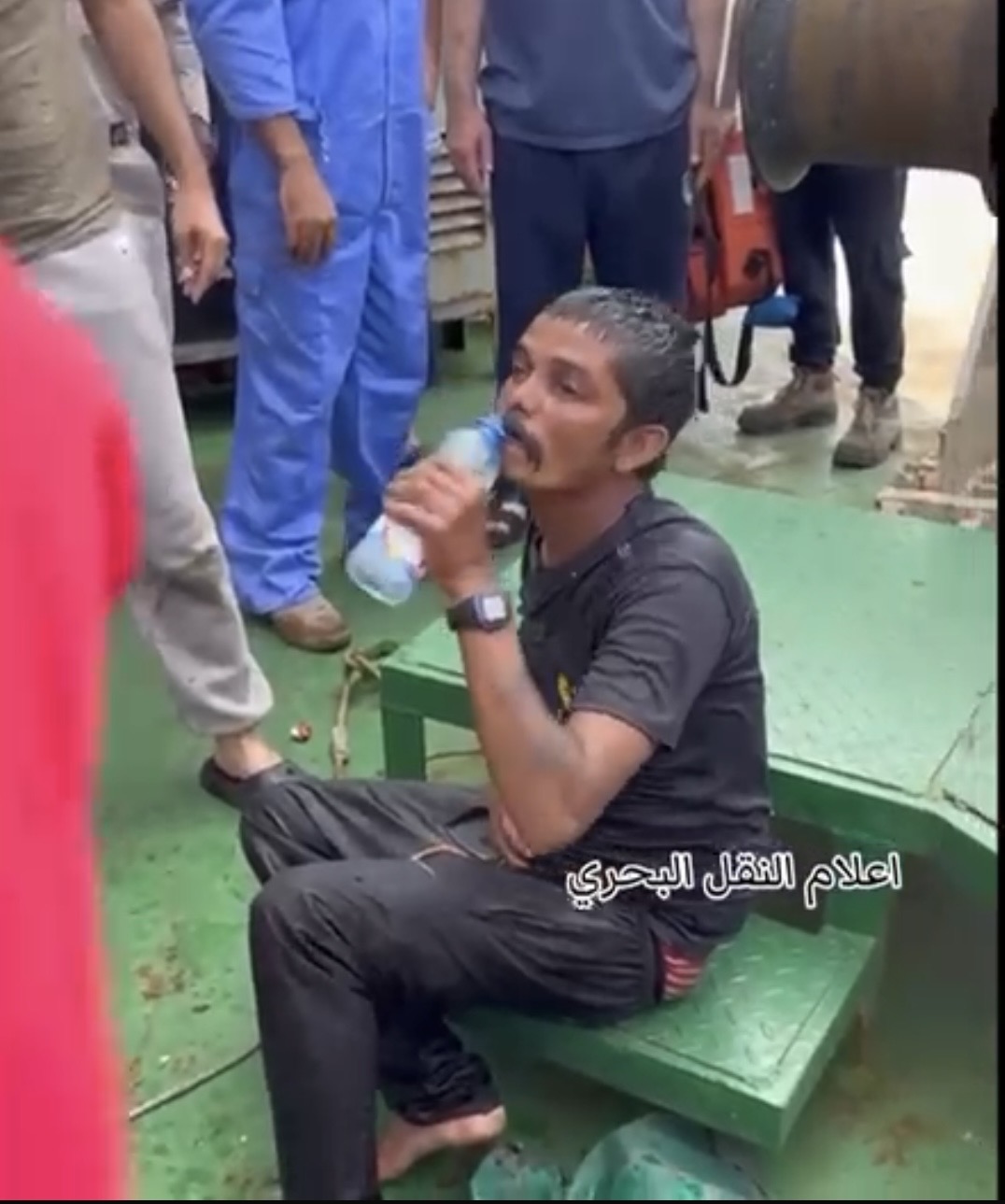 سفينة عراقية تنقذ بحار هندي من الغرق في مياه المحيط الهندي - فيديو