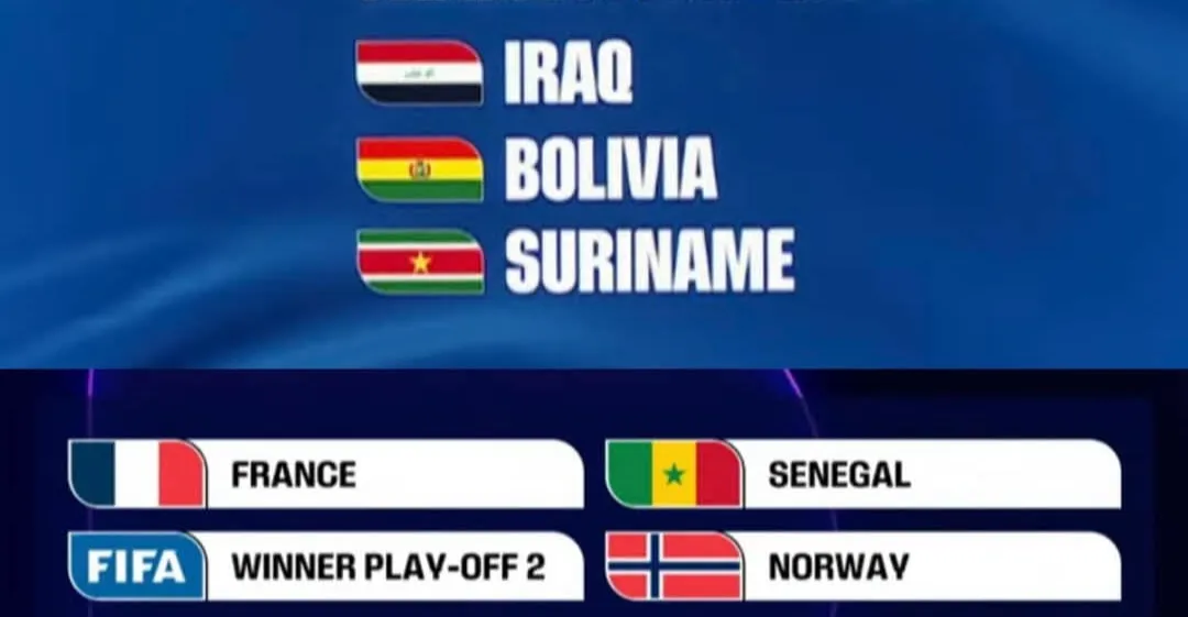 العراق في مجموعة نارية مع فرنسا والسنغال والنرويج حال عبوره الملحق العالمي