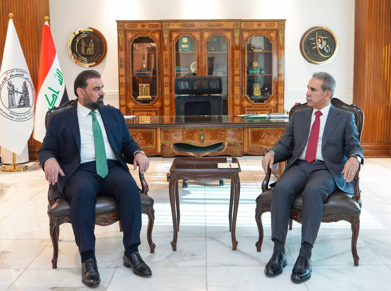 ناقش رئيس مجلس القضاء الأعلى، فائق زيدان، مع رئيس مجلس النواب هيبت الحلبوسي، اليوم الأحد، تعزيز التعاون المشترك بين السلطتين التشريعية والقضائية.