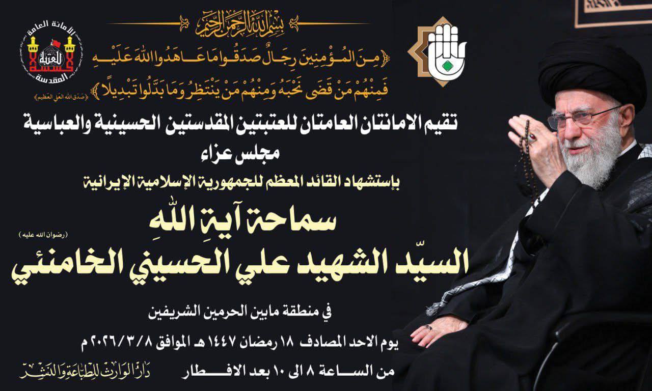 وذكرت العتبة الحسينية في منشور لها تابعه كلمة الإخباري أن مجلس العزاء يقام في منطقة ما بين الحرمين الشريفين في كربلاء المقدسة، يوم الأحد الثامن من مارس 2026 الموافق الثامن عشر من شهر رمضان المبارك، من الساعة الثامنة حتى العاشرة بعد الإفطار.