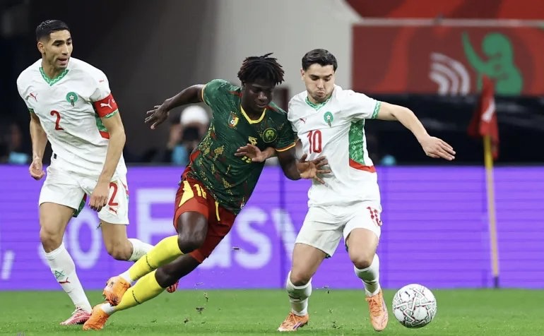حجز المنتخب المغربي بطاقة التأهل إلى الدور نصف النهائي من بطولة كأس أمم أفريقيا 2025، بعد فوزه المستحق على نظيره الكاميروني بهدفين دون مقابل، في اللقاء الذي أُقيم مساء اليوم ضمن منافسات الدور ربع النهائي، على الأراضي المغربية.