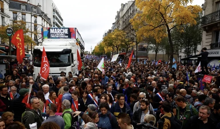 تظاهر مئات الأشخاص، اليوم الأحد، في العاصمة الفرنسية باريس، احتجاجًا على ما وصفوه بالقيود المفروضة على استخدام الإنترنت، مطالبين بانسحاب فرنسا من الاتحاد الأوروبي.