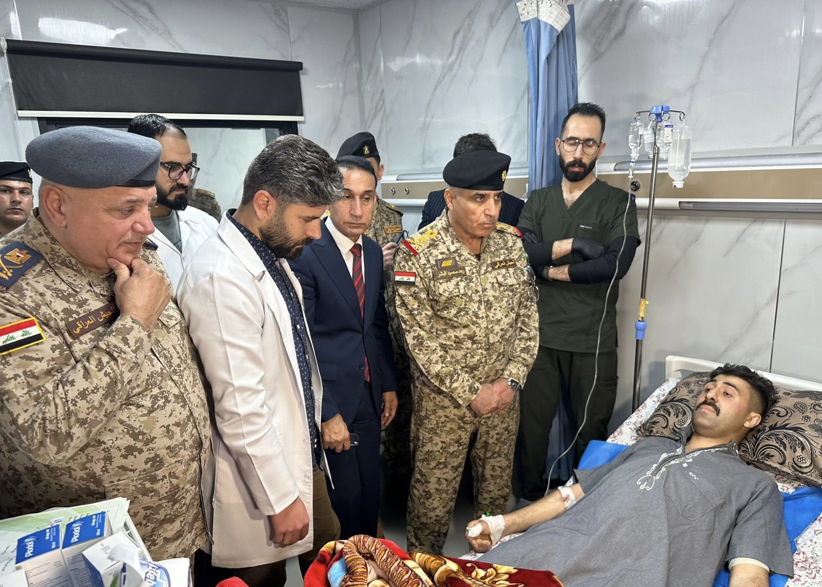وأوضح مدير الإعلام والتوجيه المعنوي في الوزارة، اللواء الطيار تحسين الخفاجي، في تصريحات تابعها كلمة الإخباري، أن "الوفد الممثل للقائد العام توجه إلى مستشفى الرمادي للاطلاع على أوضاع المصابين، ونقل تحيات القائد العام لهم، إلى جانب تقديم مكافآت مالية. كما اطمئن الوفد على صحتهم وتمنى لهم سرعة العودة إلى العمل".