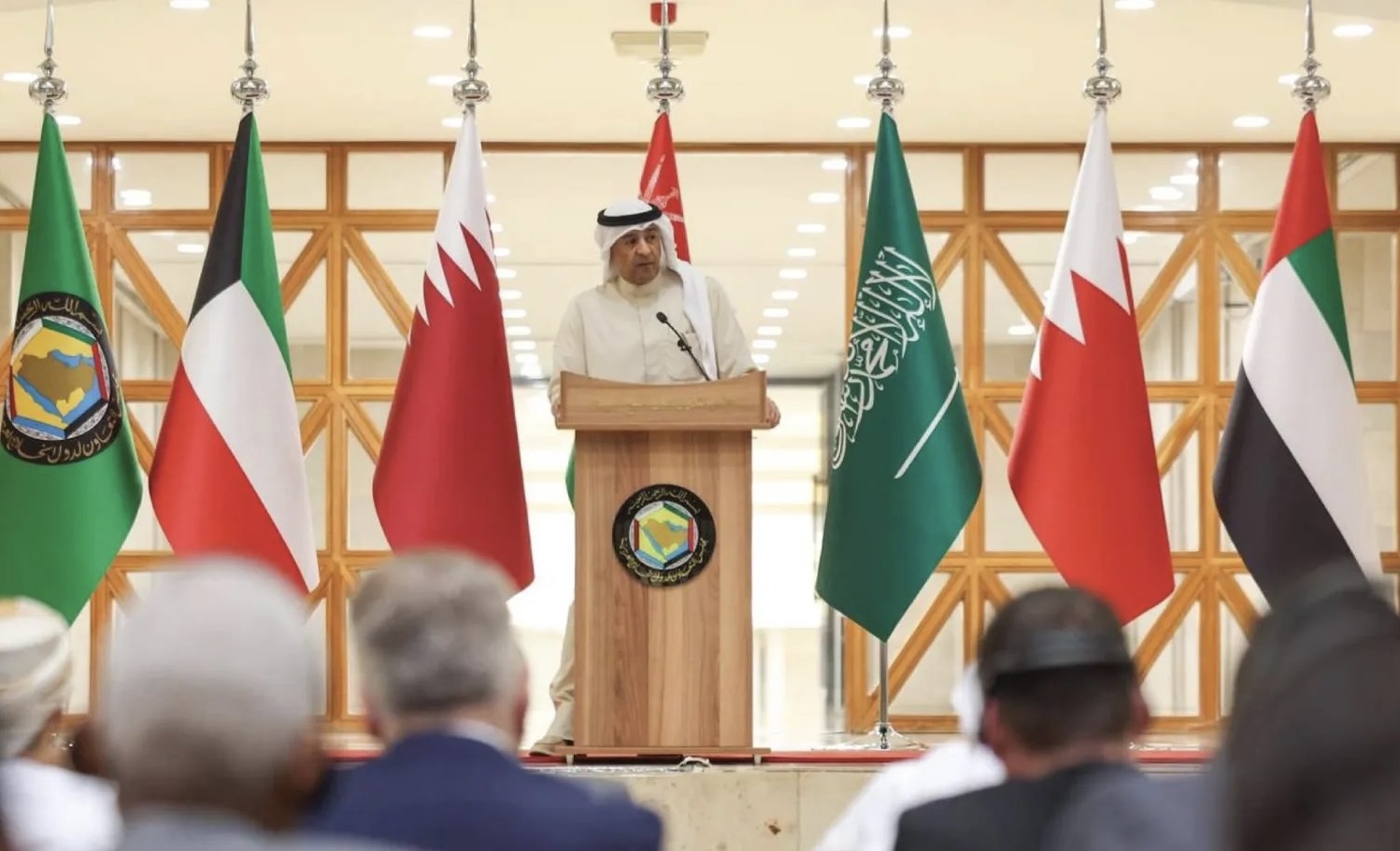 وقال الأمين العام للمجلس جاسم البديوي إن دول الخليج يجب أن تكون جزءاً أساسياً من أي ترتيبات إقليمية، محذراً من أن أي محاولات لتغيير خريطة الشرق الأوسط بعد الأزمة “مرفوضة رفضاً قاطعاً”.