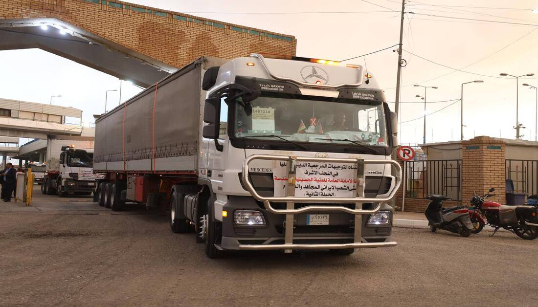 بـ24 شاحنة.. العتبة الحسينية تطلق القافلة الثانية لإغاثة الشعب الإيراني - صور